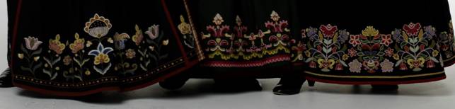 baldýringu, knipl, blómstursaum og skatteringu, flauelsskurð og