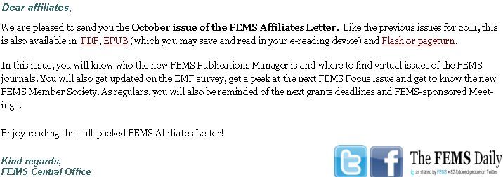 [ÖRFÍ] FEMS Affiliates Letter, October 2011