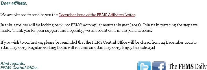 Kind regards, FEMS Central Office]