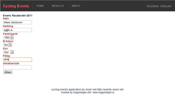 Fyrst eru keppnisupplýsingarar slegnar inn í formið.