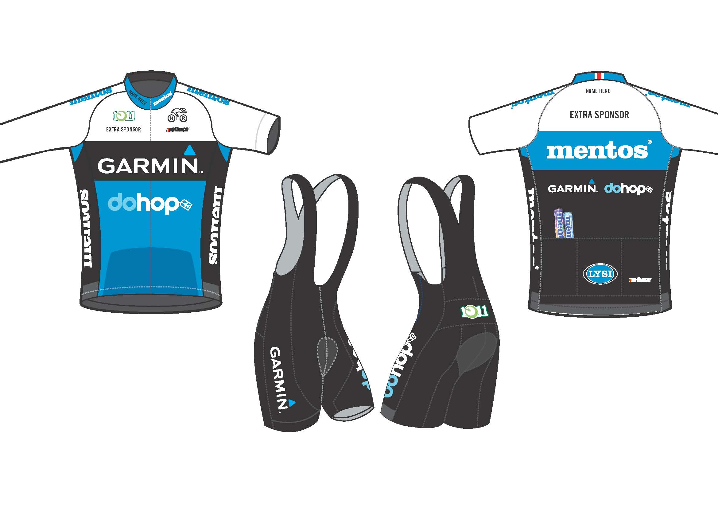 að ræða treyjur og bib-stuttbuxur í ýmsum stærðum. Því miður gleymdist að