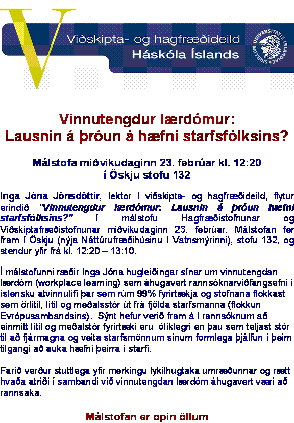 [Vid-stund] Málstofa á miðvikudag: Vinnutengdur lærdómur: Lausnin á þróun á hæfni starfsfólksins?