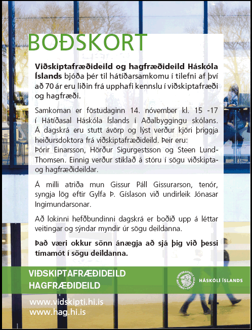 [Vid-stund] Boð í afmæli. Viðskiptafræðideild og hagfræðideild í Hátíðasal föstudaginn 14. nóv. kl. 15 - 17