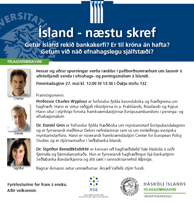 [Vid-stund] Ísland - næstu skref. Pallborðsumræður í Öskju 132, fimmtudaginn 27. maí kl. 12.00