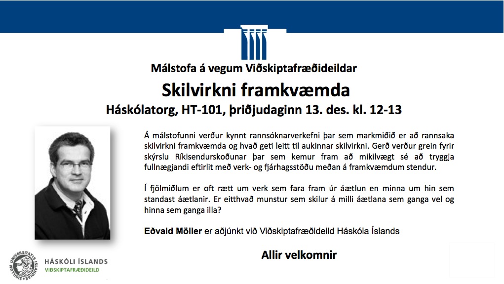 Málstofa á vegum Viðskiptafræðideildar Skilvirkni framkvæmda