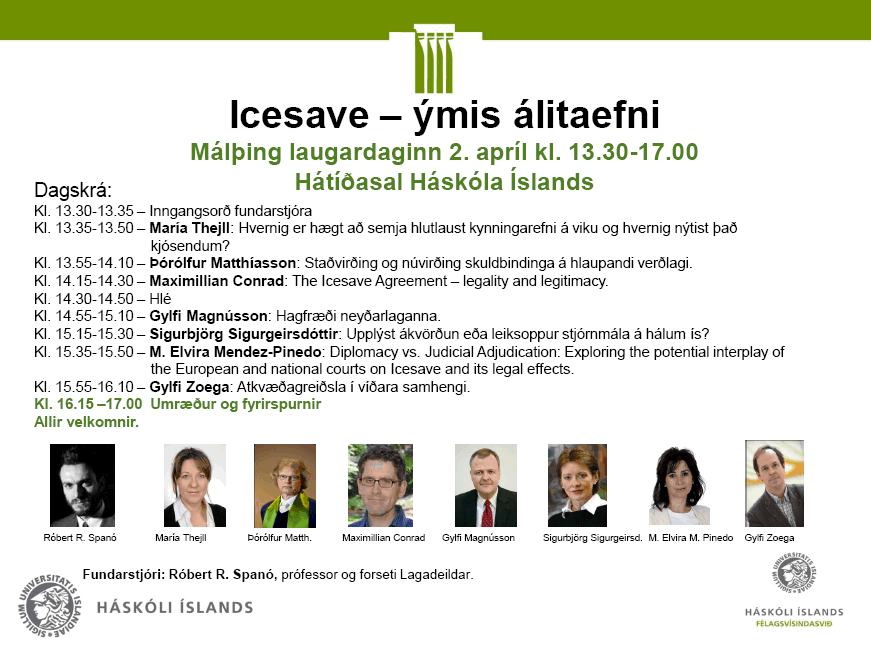 [Vid-stund] Málþing laugardaginn 2. apríl kl. 13.30-17.00. Hátíðasal Háskóla Íslands. Icesave - ýmis álitaefni. Allir velkomnir