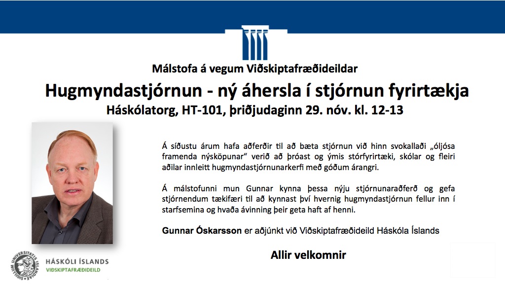 [Vid-stund] Málstofa á vegum Viðskiptafræðdeildar: Hugmyndastjórnun - ný áhersla í stjórnun fyrirtækja