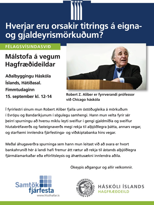 [Vid-stund] Robert Aliber í Hátíðasal: Hverjar eru orsakir titrings á eigna- og gjaldeyrismörkuðum? Fimmtudaginn 15. sept kl. 12-14