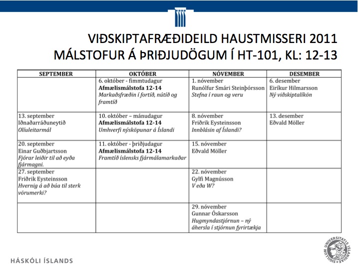 Málstofur Viðskiptafræðideildar á haustmisseri fara fram á þriðjudögum kl.