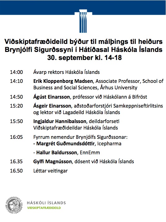 [Vid-stund] Viðskiptafræðideild býður til málþings til heiðurs Brynjólfi Sigurðssyni í Hátíðasal Háskóla Íslands 30. september kl. 14-18
