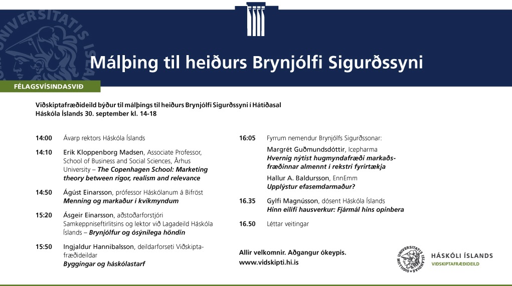[Vid-stund] Viðskiptafræðideild býður til málþings til heiðurs Brynjólfi Sigurðssyni í Hátíðasal Háskóla Íslands 30. september kl. 14-18