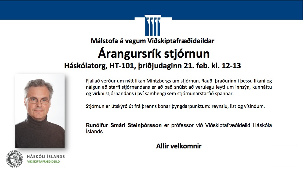 [Vid-stund] Árangursrík stjórnun - þriðjudaginn 21. febrúar kl.12-13 á Háskólatorgi, HT-101