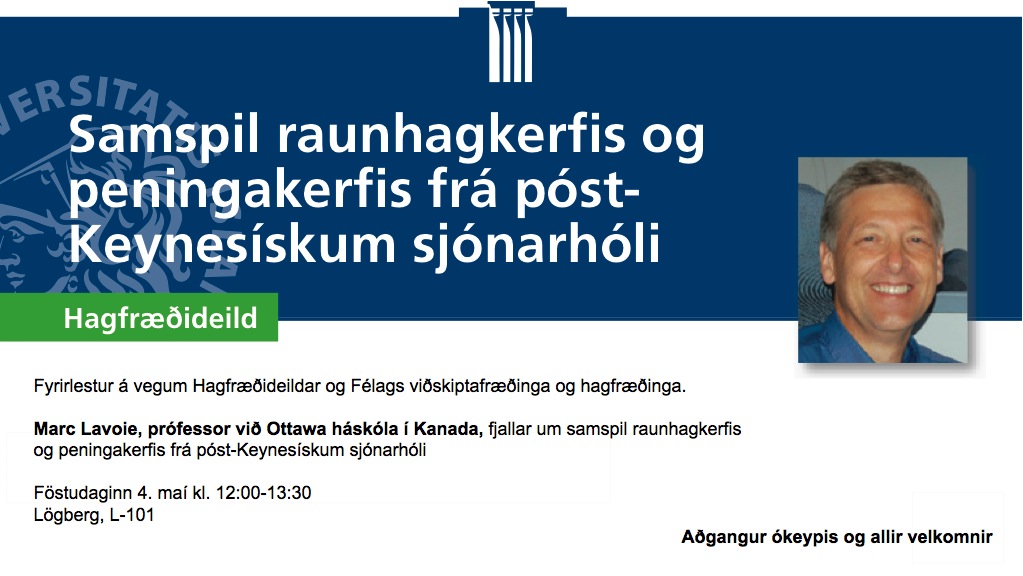 [Vid-stund] Marc Lavoie - Samspil raunhagkerfis og peningakerfis frá póst- Keynesískum sjónarhóli - Föstudaginn 4. maí kl. 12:00-13:30 í Lögbergi, L-101