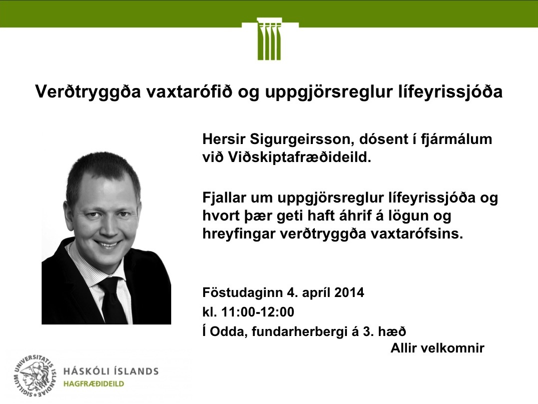 [Vid-stund] Málstofa Hagfræðideildar á föstudag: Verðtryggða vaxtarófið og uppgjörsreglur lífeyrissjóða