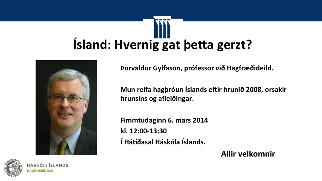 [Vid-stund] Fyrirlestur Þorvaldar Gylfasonar: ?Ísland: Hvernig gat þetta gerzt??