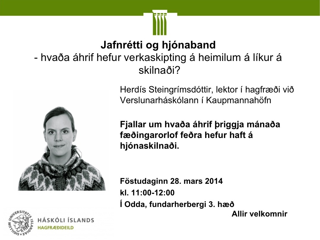 [Vid-stund] Málstofa á föstudag: Jafnrétti og hjónaband