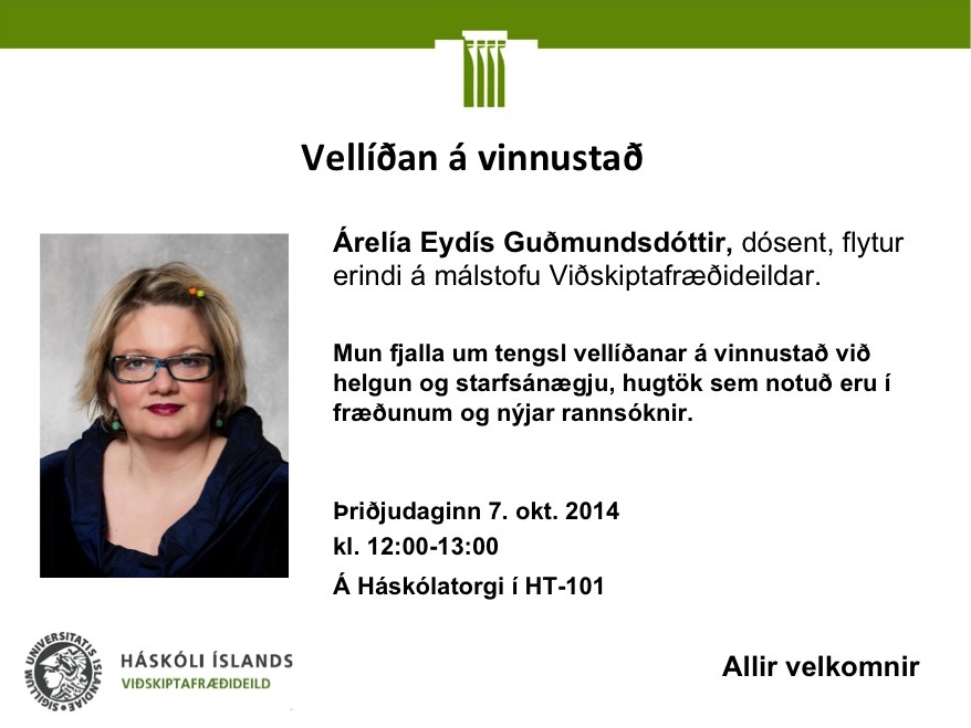 Nánari upplýsingar hér í viðburðadagatali: Vellíðan á vinnustað