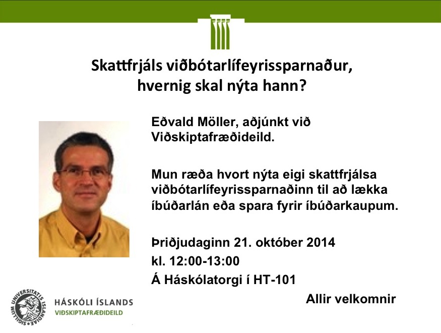 [Vid-stund] Málstofa Viðskiptafræðideildar í dag: Skattfrjáls viðbótarlífeyrissparnaður, hvernig skal nýta hann?